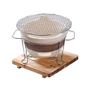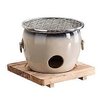 Charcoal Grill Ceramic Stove with Wooden Base for Indoor Outdoor Use, Even Heat and Multi Fuel Options