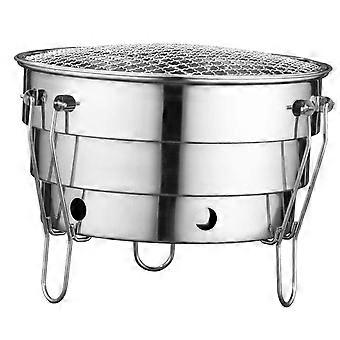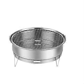 Stainless Steel BBQ Grill Smokeless Charcoal Large Round Outdoor Commercial Barbecue Silver