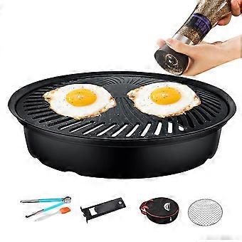Korean BBQ Grill Pan 34cm NonStick Coating with Even Heat Distribution for Indoor and Outdoor Cooking