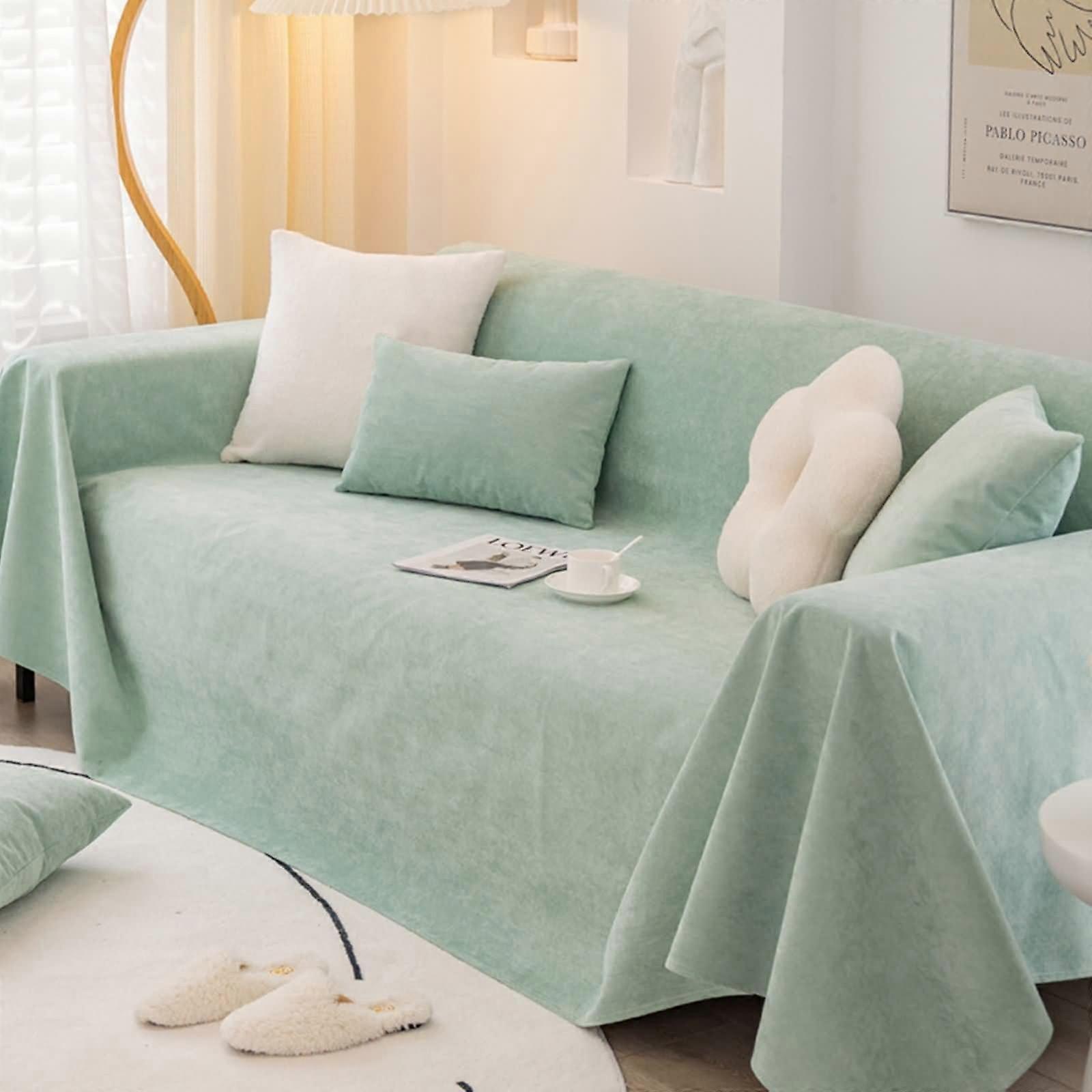 Green Chenille Sofa Cover Solid Color Couch Slipcover 3 Seater (180X300Cm)