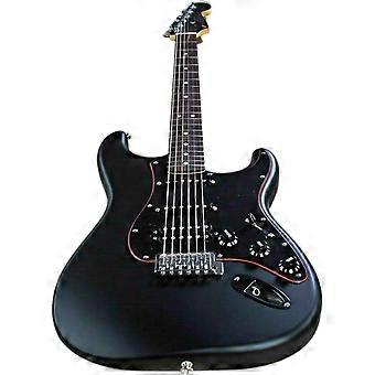 Custom Matte Black Solid Body Electric Guitar with Rosewood Fretboard and Red Line Pickguard