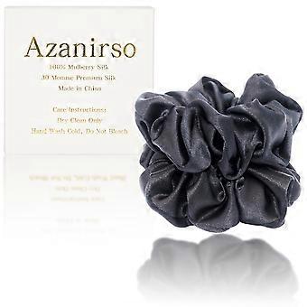 100% Mulberry Silk Hair Scrunchies 30 Momme No Damage Hair Ties for Breakage Prevention 2 Pack Black