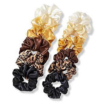 Satin Hair Scrunchies for Women, Small Silky Elastic Hair Ties Set for Ponytail, Black Brown Beige 5pcs