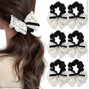 6 Pcs Lace Hair Scrunchies with Bow for Women Black and White Elastic Ponytail Holders