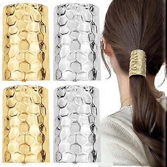4Pcs Ponytail Holder Hair Clips with Metal Cuff, Elegant Honeycomb Design Cylinder Barrettes for Women