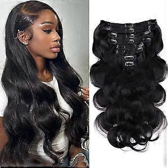 30 Inch Body Wave Clip In Human Hair Extensions Brazilian Virgin Double Weft Natural Black 8PCS