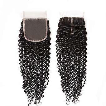 4x4 Kinky Curly Lace Closure 14 Inch Brazilian Virgin Human Hair Natural Black 180 Density