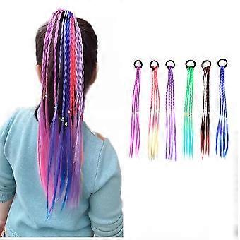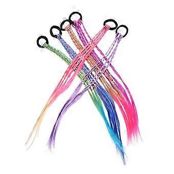 6 Pcs Colorful Braided Hair Extensions with Rubber Bands, Vibrant Ponytail Accessories for Girls and Women