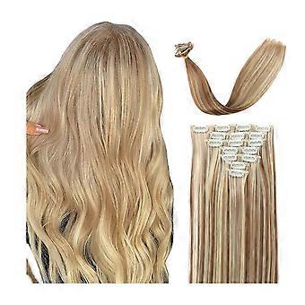 20 inch Clip in Hair Extensions 6H613# Blonde Brown Straight Hairpieces Natural Volume Secure Weft