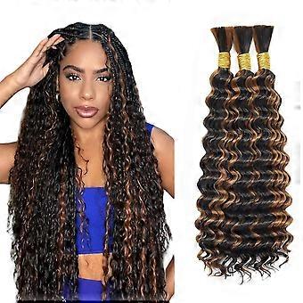 Brazilian Virgin Deep Wave Braiding Hair Extensions P430 Highlight Brown 28 Inch Human Hair Bundles