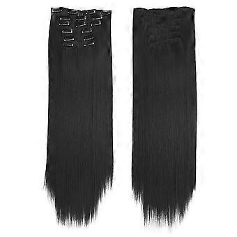 Clip In Human Hair Extensions Invisible Seamless 24 Inch Natural Black Remy Hair for Women