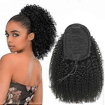Afro Kinky Curly Ponytail Human Hair Extension with Drawstring for Black Women 12 Inch Natural Black
