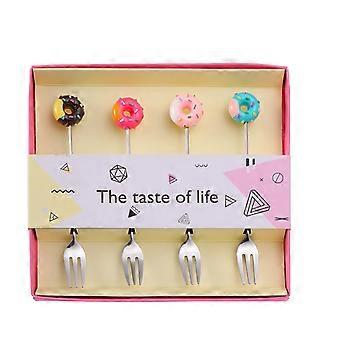 Stainless Steel Dessert Forks and Cute Donut Coffee Spoons, Mirror Polished Rust Resistant Cutlery