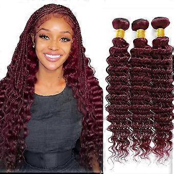 32 Inch 99J Burgundy Deep Wave Brazilian Virgin Human Hair Extensions, 3 Bundles Tangle