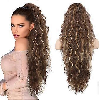 Ponytail Hair Extension 30 Inch Long Wavy Claw Clip Synthetic Hairpiece Reddish Brown Medium Blonde