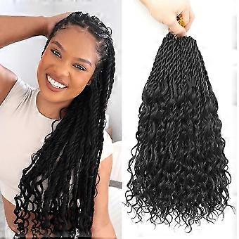 14 Inch Prelooped Goddess Locs Crochet Hair Extensions, Synthetic Boho Faux Locs with Curly Ends, 1B Natural Black for Black Women