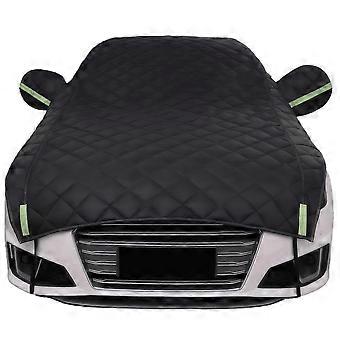 - Durable Material : Crafted from thick, high-quality fabric, this hail protection car cover offers exceptional durability and resistance to wear and tear. It's designed to provide long-lasting protection season after season, ensuring your vehicle stays safe from harsh weather conditions. - Reflective Safety Strips : Equipped with reflective strips, this hail cover enhances nighttime visibility, adding an extra layer of security. The reflective elements help you easily locate your vehicle in low-light conditions, reducing the risk of accidental bumps or damage. - Easy to Use and Store : This hail cover is user-friendly, allowing for quick installation and removal, making it convenient for daily use. When not in use, it folds compactly for effortless storage. A storage bag is included, keeping your cover clean and ready for use at all times. - Secure Fit with Elastic Band : Designed with an elastic strap, this hail protection cover ensures a snug fit, keeping it securely in place even in windy conditions. The tailored design perfectly accommodates vehicles ranging from 16 to 17 feet, providing comprehensive coverage and maximum protection. Use Scenarios : 1. Protect your vehicle from hail damage during stormy weather, avoiding costly repairs. 2. Use it as a safeguard against UV rays while parked outdoors, preventing paint and interior fading. 3. Keep your car clean during storage or when parked for extended periods, shielding it from dirt, debris, and bird droppings. By choosing this hail protection car cover, you're investing in a reliable solution that ensures your vehicle remains in top condition, no matter the elements.