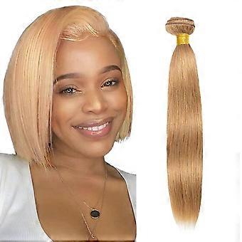 #27 Honey Blonde Straight Human Hair Bundle 14 Inch Brazilian Virgin Remy Extensions Silky Natural Look