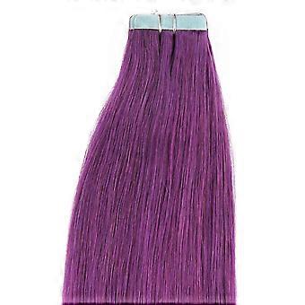Tape In Human Hair Extensions Straight 24 Inch 20pcs Seamless Silky Natural Lila Light Purple