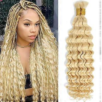 613 Blonde Deep Wave Human Braiding Hair 14 Inch Virgin Brazilian Bulk Extensions for Boho and Knotless Braids