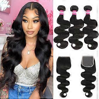 Brazilian Body Wave Hair Bundles 20 22 24 with 18 Inch Lace Closure 10A Unprocessed Virgin Human Hair