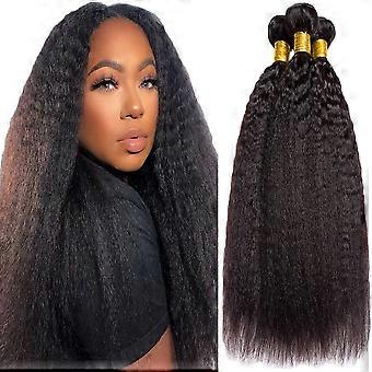 Brazilian Kinky Straight Hair Bundles 30 Inch Virgin Human Hair Extensions Natural Color Double Weft 3pcs
