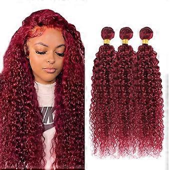 99J Burgundy Kinky Curly Human Hair Bundles 26 28 30 inch Virgin Remy Brazilian Weave