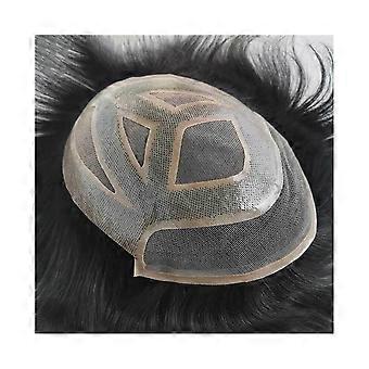 Mens Toupee Hair Replacement System 6x8 Swiss Lace Human Hairpiece 1B Off Black 120% Density