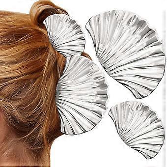 Silver Seashell Hair Claw Clips Pack of 2, Durable Metal Alloy, Non Slip Design for Women
