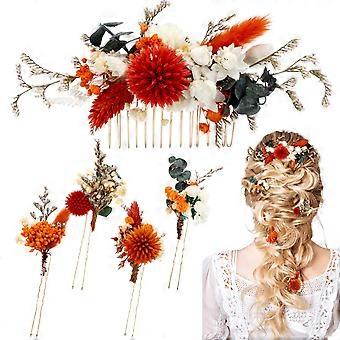 Bridal Hair Accessories Set Burnt Orange Dried Flower Hair Pins with Eucalyptus for Wedding Bride