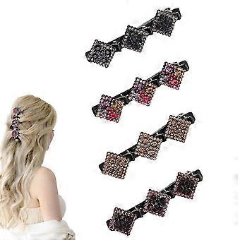 Sparkling Rhinestone Braided Hair Clips for Women, 4 PCS Triple Layer Non Slip Hair Accessories