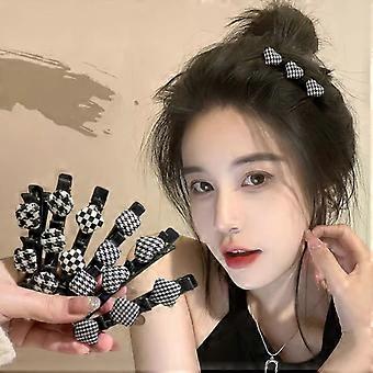 Braided Hair Clips for Women, Retro Fabric Duckbill Barrettes with Double Layer Swallow Grid, 6 Pack