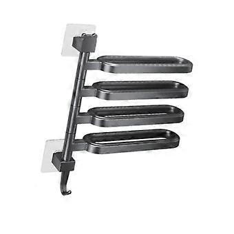 No Drilling Rotating Towel Rack Wall Mounted 180° Swivel Rail Space Saving Bathroom Black 36x38cm