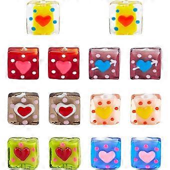 Handmade Lampwork Beads Mixed Colors Square 15.5~16x15x6mm Hole: 1.6~1.8mm 2pcs/color