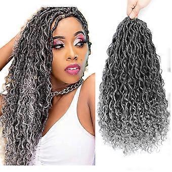 Faux Locs Crochet Hair 14 Inch Prelooped Goddess Locs Extensions T Gray Wavy Curly Ends 6 Packs