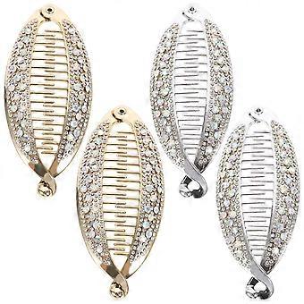 Vintage Rhinestone Banana Hair Clips Gold Silver Crystal Grip for Thick Hair Women 4pcs