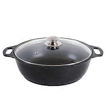 Cast Iron Cooking Pot with Lid, NonStick BBQ Pan for Camping, Even Heat for Chicken Wings Corn 25cm