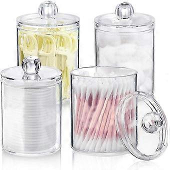 4 Pack Clear Plastic Qtip Holder Dispenser 10 oz Canister for Bathroom Storage and Organization