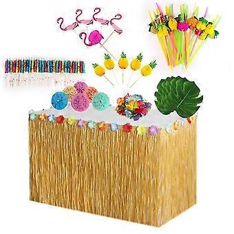 Hawaiian Party Decorations Set With Grass Table Skirt Hawaiian Leis Palm Leaves Hibiscus Flowers Paper Pines Umbrellas/flaos/pines 3d Fr