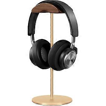 Headphone Stand, Walnut Wood Aluminum Headset Stand, Nature Walnut Gaming Headset Holder With Solid Heavy Base For All Headphone Sizes
