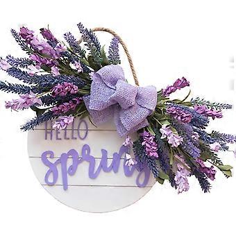 Hello Spring Sign for Front Door - Lavender and Purple Flower Cluster Wooden Wreath, 18 Inch Rustic Decor