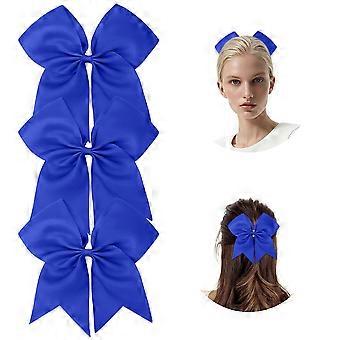 8 Inch Large Blue Cheer Hair Bows with Elastic Ponytail Holder, Grosgrain Ribbon for Girls and Women