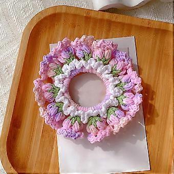 Purple Lily of the Valley Hair Tie, Handmade Crochet Flower Scrunchie for Secure Elegant Style