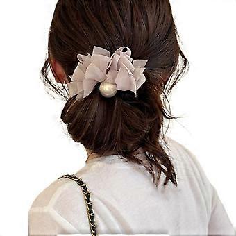 Gray Chiffon Hair Scrunchie with Pearl Accent for Elegant Versatile Hairstyles