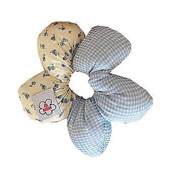 Blue Striped Floral Hair Scrunchie with Secure Elastic Hold and Handsewn Flower Detail for Women