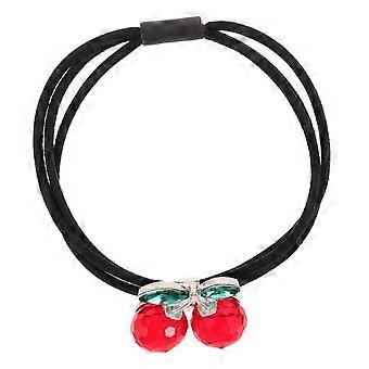 Crystal Hair Ties with Sparkling Crystal Cherry Accents, Korean Style Elastic Ponytail Holders for Women