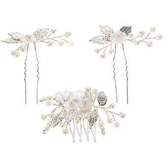 Bridal Hair Comb with Pearls and Crystals, Silver Wedding Hair Accessories for Brides and Bridesmaids