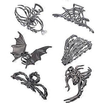 6pcs 6 Styles Spider Hair Claw Clips, Metal Gothic Nonslip Bat Web Spooky Barrettes Hair Accessories Clawclips for Thick Long Hair Styling Decorations