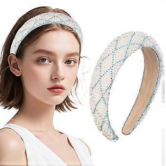 Pearl Rhinestone Headband with Comfortable Non Slip Stretch Fabric for Women in White