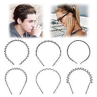 6pcs Black Metal Wavy Headbands for Men and Women, Nonslip Durable Hair Bands Set for Sports